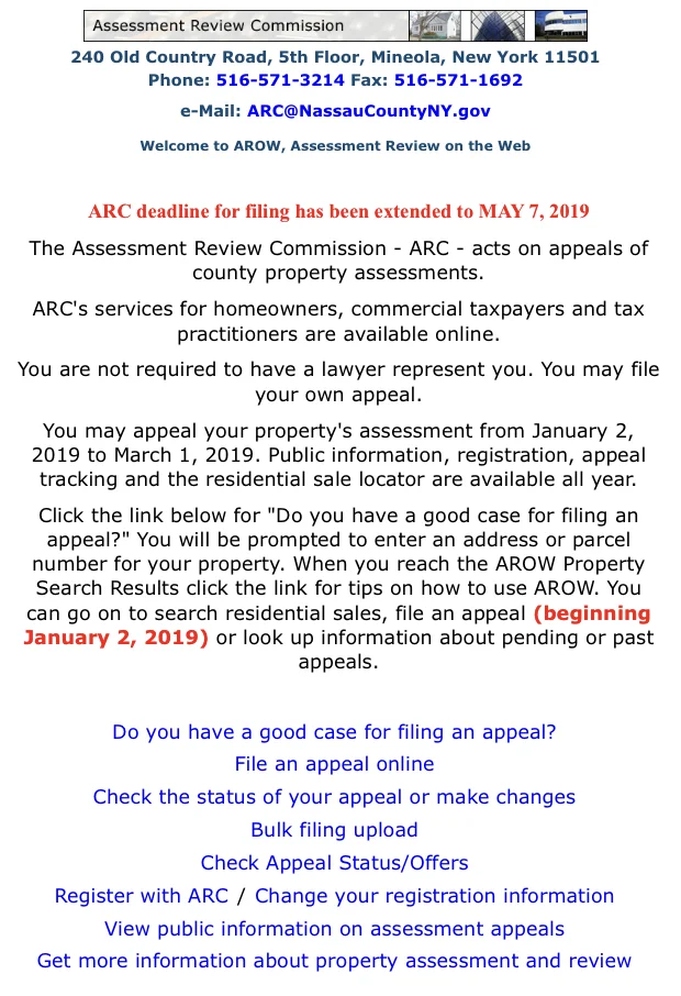 • repeat this process annually until reductions cease. Nassau county executive laura curran recently announced that the assessment review commission (arc) will extend the property assessment grievance deadline until monday, april 30. Nassau county executive laura curran announced that the assessment review commission (arc) will extend the property assessment grievance deadline from march 1, 2021 to friday, april 30, 2021 by.