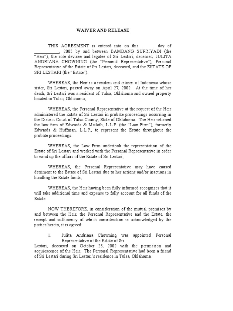 Waiver And Release Pdf Inheritance Probate